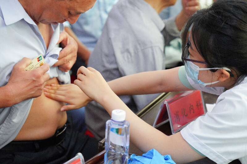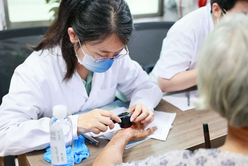 首都医科大学义诊实践团成员为患者查体。(图片由学校提供)