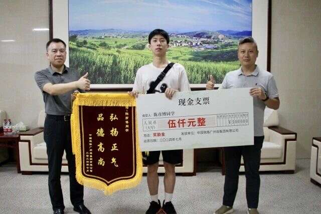 7月10日,广铁集团长沙客运段的工作人员前往陈彦博的姐姐家,向其送上印有“弘扬正气,品德高尚”的锦旗,并颁发了铁路治安联防特别贡献奖金5000元,以此感谢其在列车上挺身救人的行为。