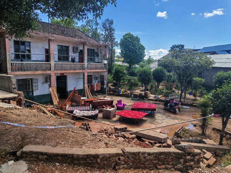 56岁的村民周正军介绍,现在的华中村是由沙泉、高司、天白三个村子在2012年左右合并的。此次决口位于沙泉村,该村的损失也最大。“(得知决堤后)人还没走得赢,水就来了”,他家里千把斤谷子、六七十只鸡全被淹了。