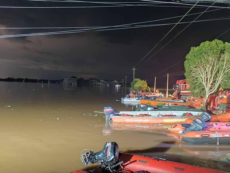 四新堤决口后,由于担心漏电,国网湘潭供电公司拉了电闸。湘阴蓝天救援队张丹波接到指令,和12名队员带着三条船来到了被淹的新塘村、新虎村。