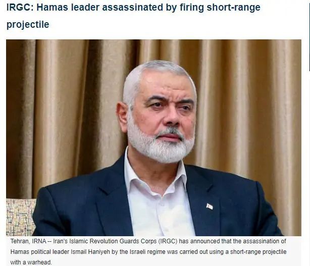 据报道,伊朗伊斯兰革命卫队在一份声明中表示,“针对哈尼亚的暗杀行动是由以色列策划和实施的,并得到了美国政府的支持。”