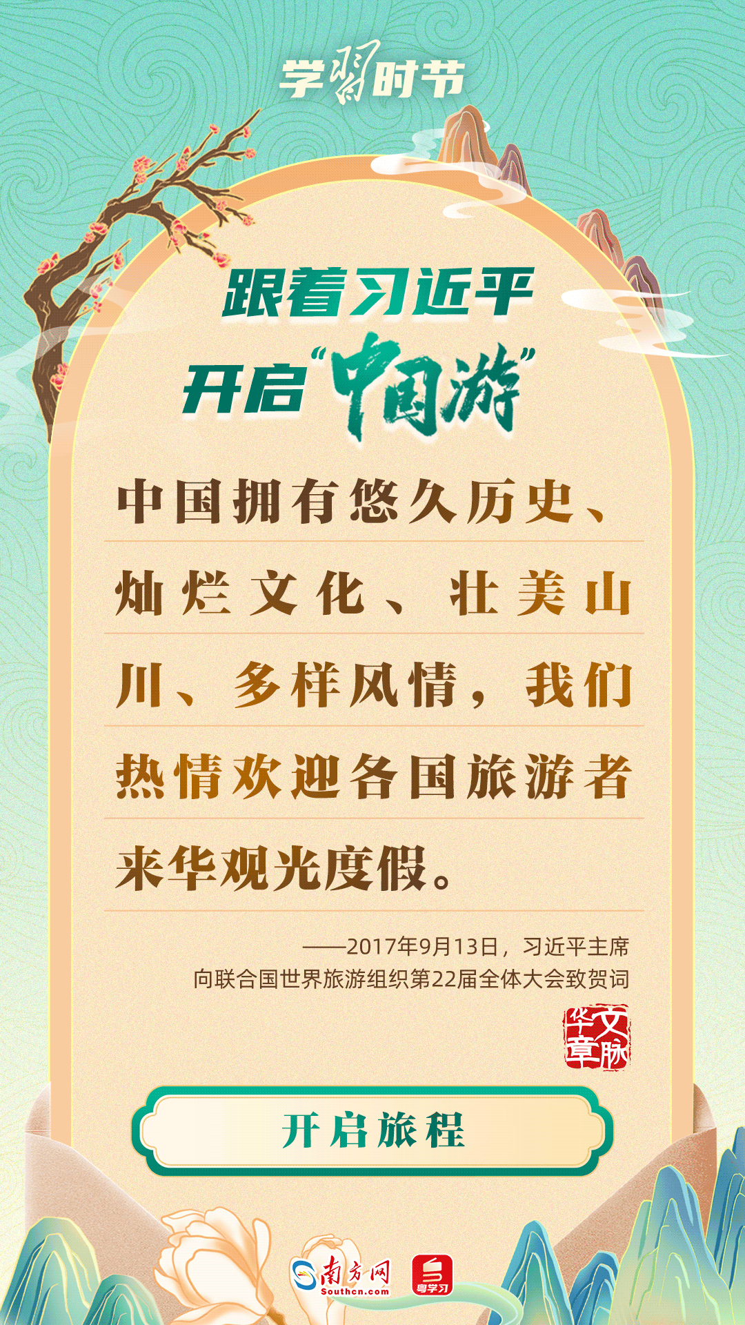 习近平主席多次向世界发出邀请,热情欢迎各国游客来华旅行,结识中国朋友、体验中华文化、游览美丽山水,亲身感受多彩中国。