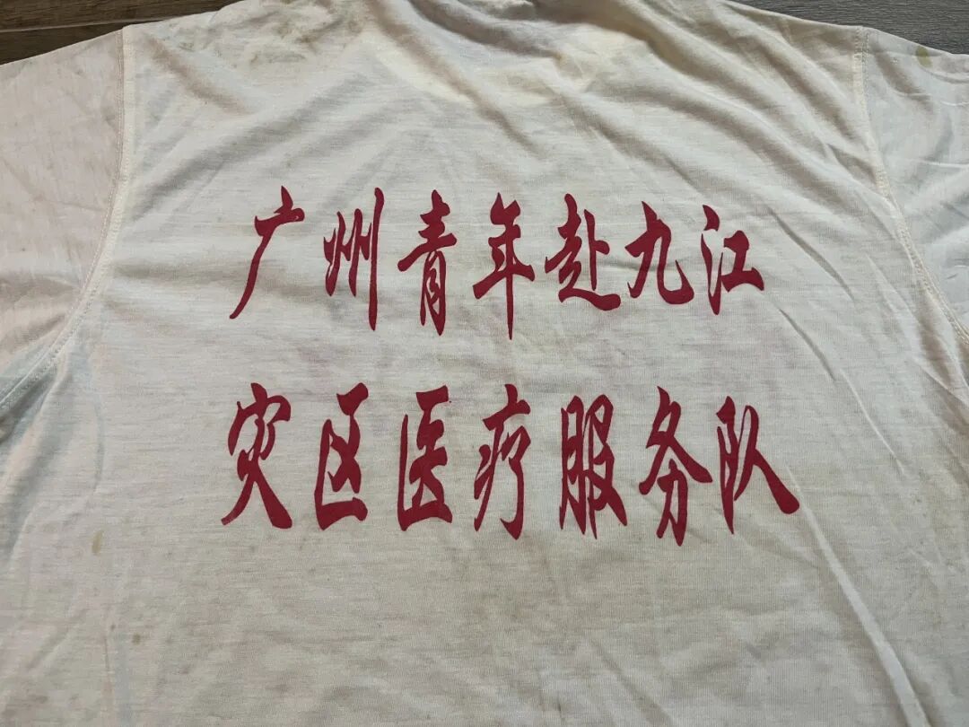 当时穿在身上的一件医疗队服也被我保留至今,只因上面印着的4个红字:情牵长江。