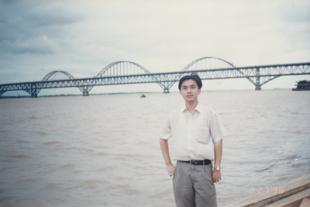1995年6月,邓煜辉在广医越秀校区中心花园英语角长廊前留影