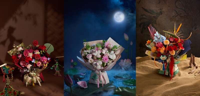与成都博物馆合作的“西厢记皮影花束”,灵感来源于皮影馆藏中国经典剧目《西厢记》中的爱情故事;与河南博物院合作的“粉彩荷花吸杯花束”,灵感来自文物“粉彩荷花吸杯”,用荷花传递文物“纯洁真挚”的含义;与敦煌市博物馆合作的“敦煌文化联名款花束”,用敦煌色调传递深沉、经典的敦煌元素。