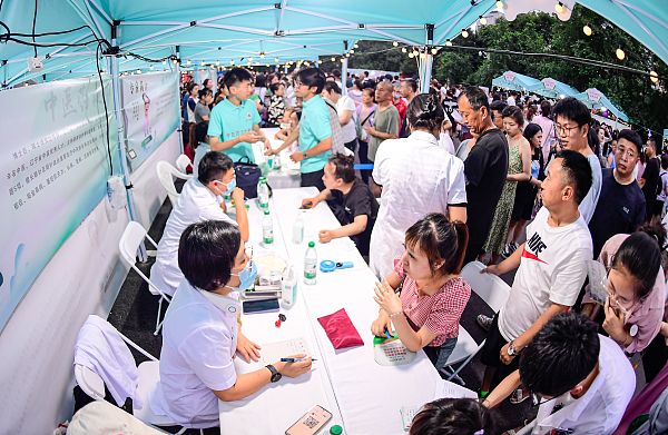 2024年8月9日,沈阳,由辽宁中医药大学举办的“岐黄惠沈城,健康夜市行”首届中医药文化夜市在辽宁中医药大学附属医院主院区举行。据了解,夜市设有9大主题“摊位”,不仅汇聚了丰富的中医药文化,还提供了各种中医药体验活动,以实用、互动、有趣的形式,为广大市民带来一场别开生面的健康体验。