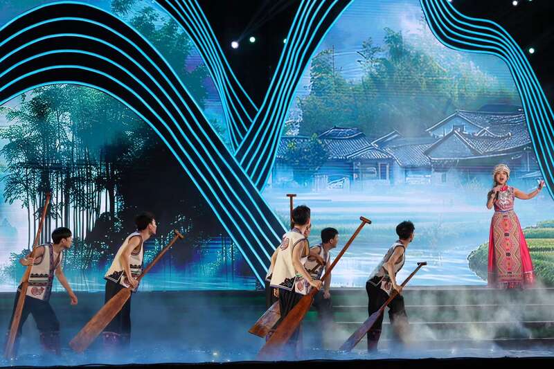 开幕式现场,6位非物质文化遗产传承人共同点亮唱片,启动本届民歌展演活动。接着,以“放歌千年”为主题的开幕演出,奏响了一曲曲穿越时空的动人旋律。
