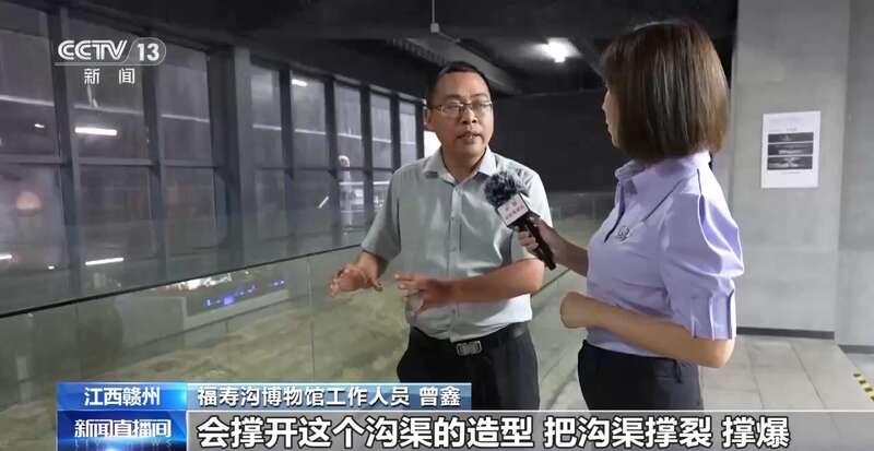 福寿沟博物馆工作人员 曾鑫:福寿沟就是古代的城市排水系统。古人的排水智慧在于借势,因此在修建排水沟时,会根据古城内各个区域的高低,修建大小不同的沟渠,来增加水的流速。福寿沟渠的走向,由北向南看,像小篆当中的“福”字,由东往西看,像小篆当中的“寿”字,因此叫福寿沟。