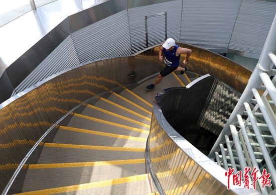 爬楼也是一项很便捷的运动,它不受天气影响,可以有氧无氧相结合,丰俭由人,既能避免体能消耗过快,又能及时调整自己的训练计划。今年雨水多,下雨出门不方便时我就选择爬楼作为其他锻炼的补充。8月8日全民健身日,我还参加了“2024奥塔垂直跑”赛事。垂直跑/垂直马拉松起源于1978年攀登美国帝国大厦(86层楼,1576级台阶)的活动,并逐渐发展成一项跨越年龄、性别,不受场地、时间、天气限制的国际流行健身运动。今年的全民健身日恰逢第33届夏季奥林匹克运动会在法国巴黎举行,在我国奥运健儿奋力拼搏的感染之下,我攀上北京246.8米高的奥林匹克塔,俯瞰北京城。此时,阳光似乎没那么耀眼了,高空的风吹来,运动健将们都在合影留念。古老和现代结合的中轴线,从没如此清晰,我也是第一次从这个角度看生我养我的北京,自豪油然而生,感觉能参加这样的活动特别庆幸,也特别有意义。