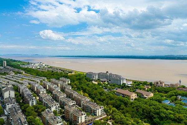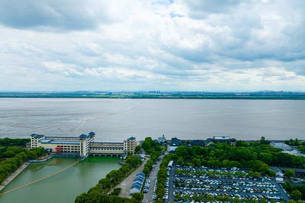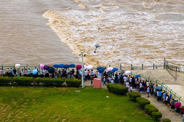 2024年8月21日,浙江嘉兴,一年一度观赏被称为“鬼王潮”的钱江大潮最佳时机到来,众多游客在海宁观潮景区赏景。