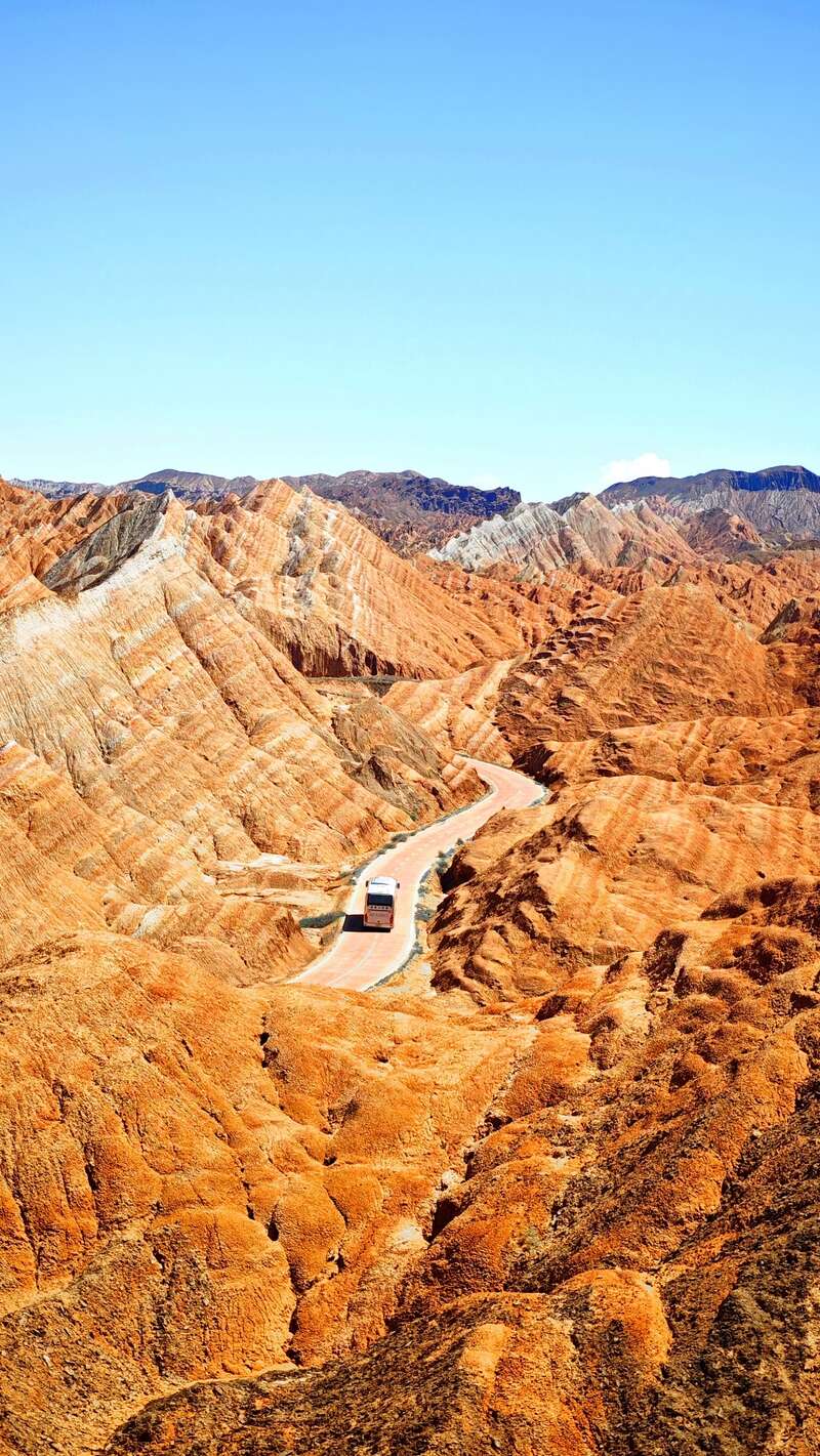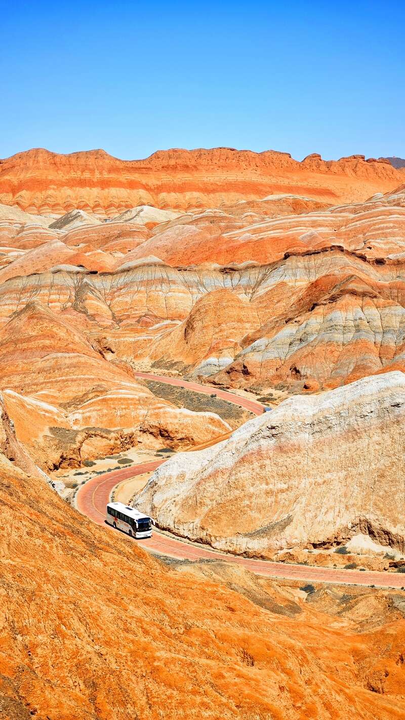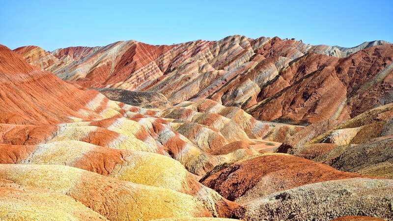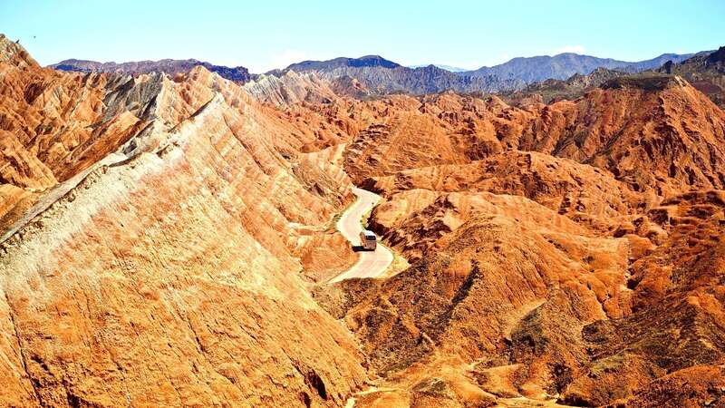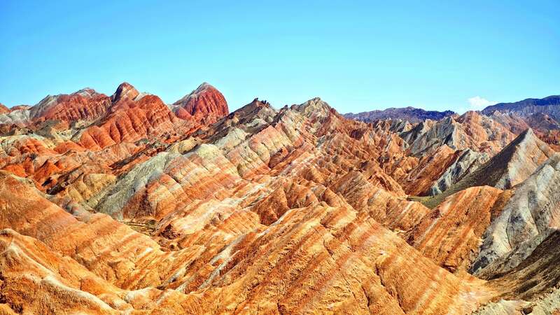 近日,在甘肃张掖七彩丹霞景区,远眺群山,只见红、黄、橙等多种鲜艳色彩交织在一起,仿佛打翻了大自然的调色盘。