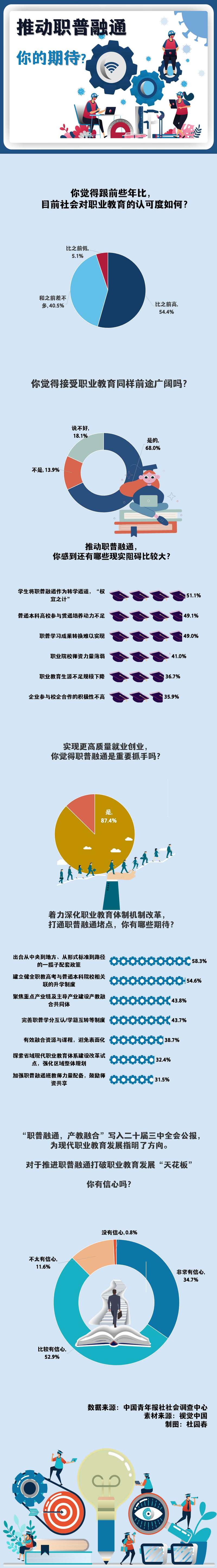 党的二十届三中全会提出“加快构建职普融通、产教融合的职业教育体系”,职业教育与普通教育融合是我国现代教育体系发展的大趋势,职普融通能够促进学生在综合素质与实践能力之间做好平衡。上周,中国青年报社社会调查中心就“职普融通”展开了专题调查,有重要数据发现。具体请看本期《图解数据》。