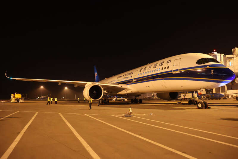 2024年4月24日晚,南航沈阳-法兰克福CZ8021首航航班在沈阳桃仙国际机场准备起飞。这是国内航司在东北地区开通的首条直飞德国定期航线。