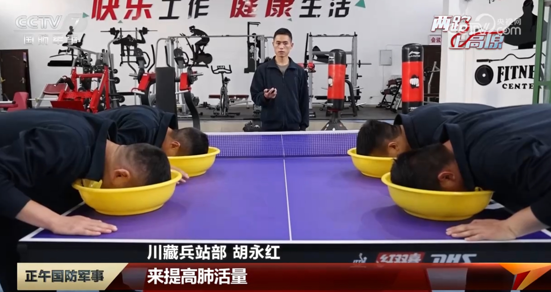 川藏兵站部胡永红介绍:“首先大部分人初上高原,身体机能各方面,比如心脏这些都不适应高原的气候,提前做抗缺氧操有利于适应高原的环境。一两周之后,你可以慢慢适应去训练,主要是心肺功能的训练,平时我们也会进行水中憋气来提高肺活量。日常我们也会注意改善自己的生活习惯,比如用腹式呼吸可以改善缺氧状态。”