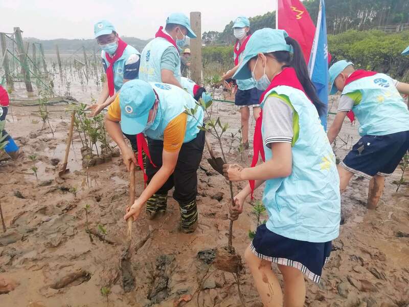 此外,学校还开发了专门的研学项目,带学生到红树林育苗场、红领巾育苗圃,通过听专业人士讲解、观察、记录等方式,了解什么是红树林有哪些品种、哪些特点等知识,认识到保护红树林的作用。