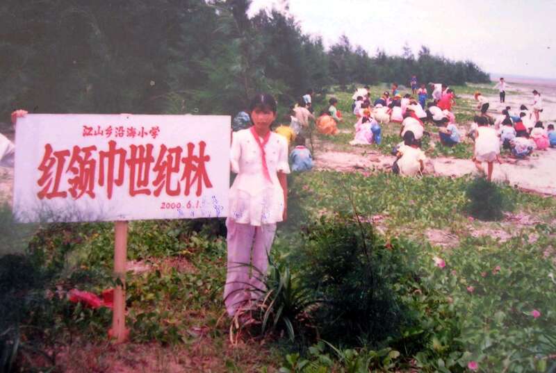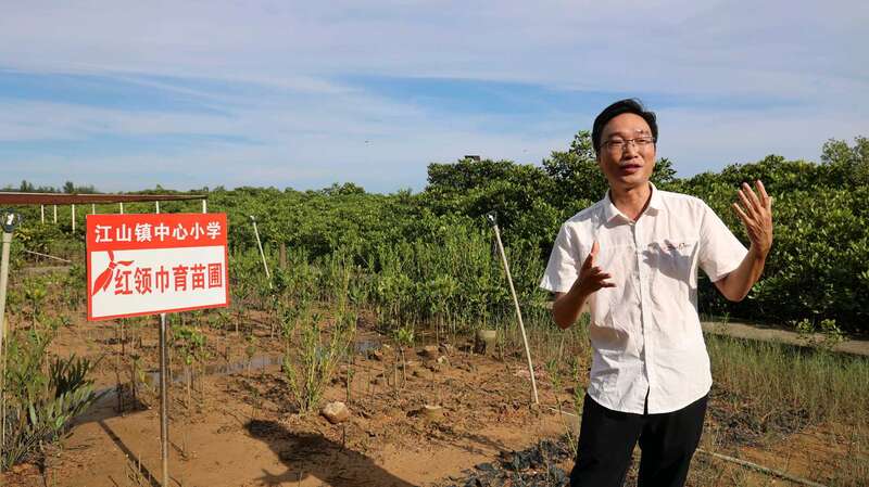为了保护当地的生态环境,从1989年起,江山镇中心小学创建“海上森林小卫士”少先队活动品牌,每年都会组织少先队员来到这里种植红树林、育苗培圃。并先后在这片区域打造“青少年蓝色教育基地”、“红领巾红树林防护林带”和“红领巾劳动实践教育基地”。