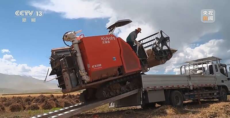 本周三,被雪山环绕的甘孜县,青稞已经成熟,金黄色等色彩,成了国道317上的调色板。县域内外,20多辆收割机,要在为期一个月时间内,完成13万余亩的青稞收割工作。