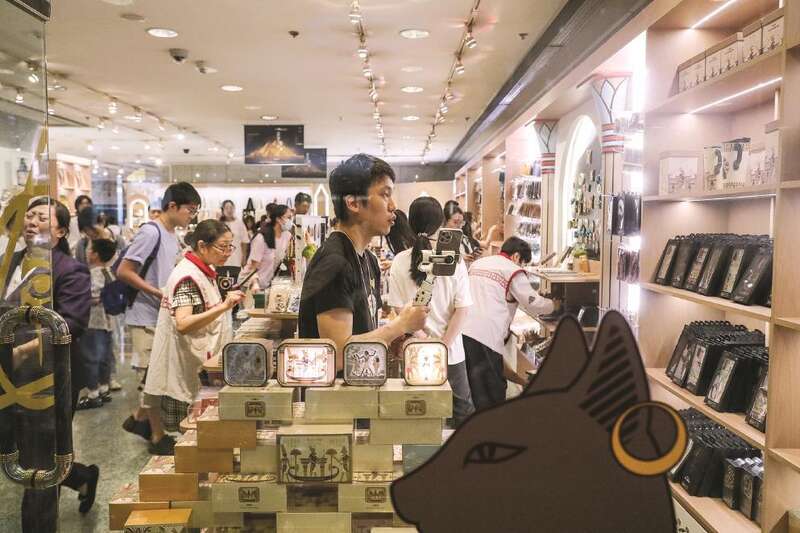 近日,淮海中路上开出“金字塔之巅@淮海”文创快闪店,将展览的热度引入更广阔的城市空间。 ▼下转第三版(上接第一版)作为首届“上海之夏”国际消费季七大标杆活动之一,该展联动文商体旅,推出“一站式”文旅新场景新体验,持续放大“文博热”的溢出效益。比如,携手悦星文旅打造“从尼罗河到黄浦江”——“上博号”古埃及主题游轮,打造沉浸式江上游览新名片;与南京路步行街区、淮海中路—新天地街区、豫园商城等重点商圈联手,推出“一票享惠黄浦”等系列活动;独创的博物馆奇“喵”夜活动一经推出,人民广场周边宠物友好型酒店搜索量同比增长逾50%;未来还将与久事体育合作,推出世界顶级体育赛事与展览门票的联动。