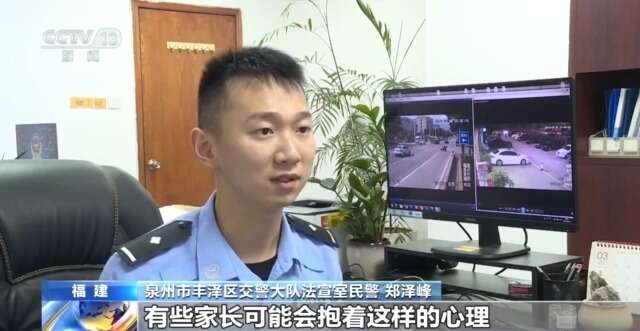泉州市丰泽区交警大队法宣室民警 郑泽峰:有些家长可能会抱着这样的心理,觉得将孩子带出门,孩子在目光所及的范围内就是安全的,其实这样是错误的。
