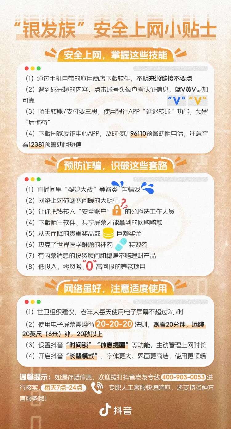 为帮助老年人安全上网,抖音联合中国人民大学人口与健康学院共同发起“智慧夕阳”网络素养公开课(以下简称“课程”),联动多地公安,面向银发群体普及网络安全知识,帮助他们识别网络风险,提高风险防范意识和能力。