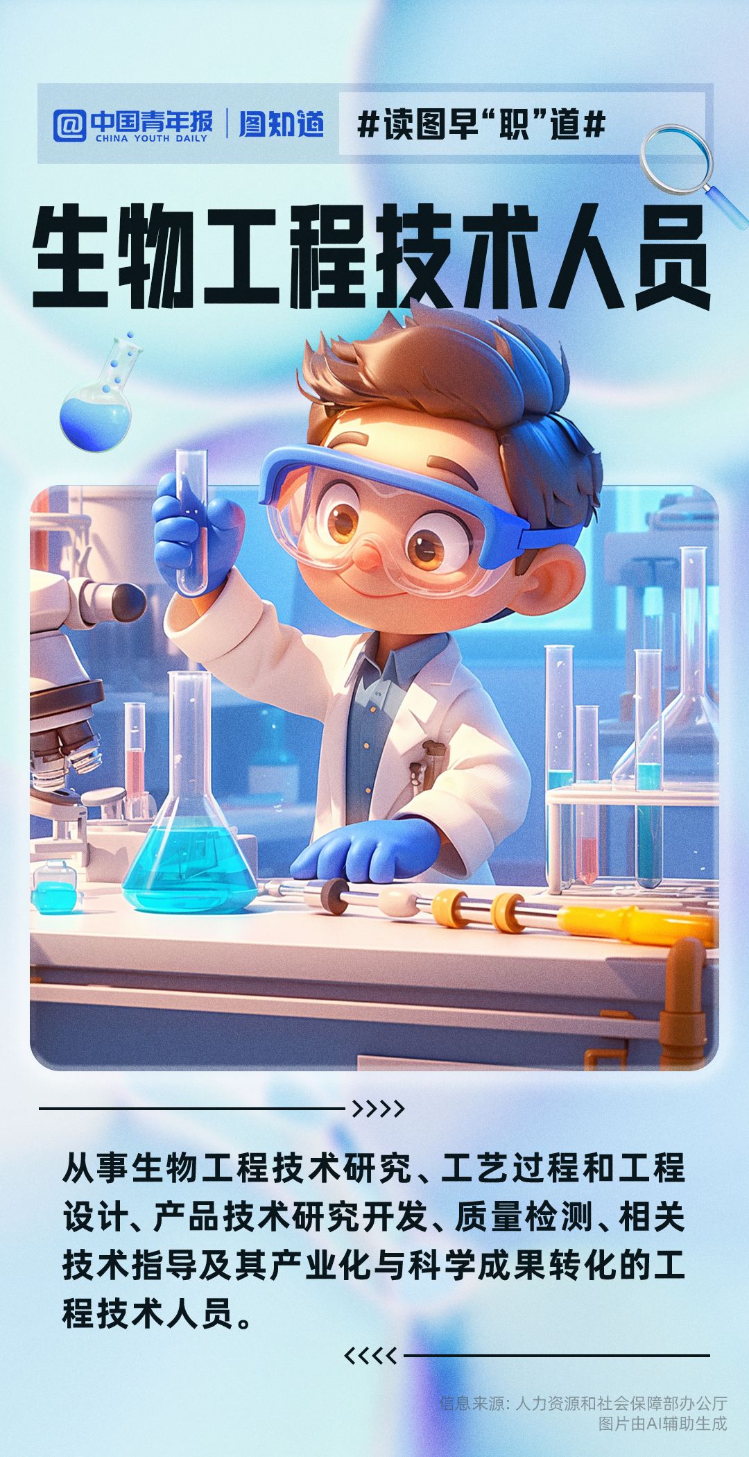 日前,人力资源和社会保障部等部门向社会正式发布了19个新职业信息。“生物工程技术人员”“生成式人工智能系统应用员” “氢基直接还原炼铁工”等新职业正式出现在大众视野里。读图为大家解锁每个新职业将会带来的就业新机遇。今天,让我们先来了解一下生物工程技术人员具体从事哪些工作吧。