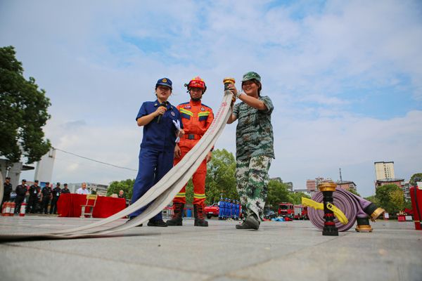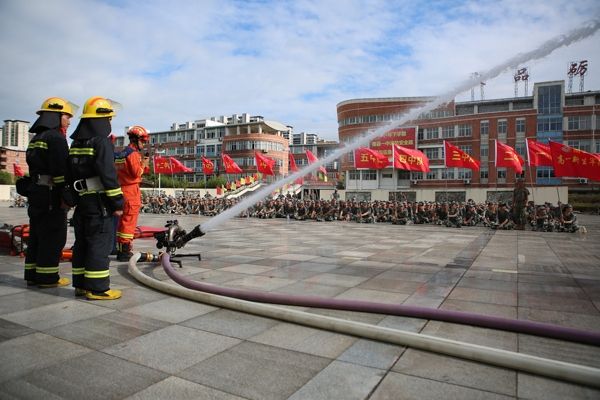 2024年8月28日,湖南益阳,南县第一中学高一新生体验操作消防器材。湖南省益阳南县消防救援大队以新生开学军训为契机,通过消防知识讲座、消防情景剧演示、消防装备体验、初期火灾处置等方式,为南县第一中学1400余名高一新生上好“开学第一课”,切实增强在校师生的消防安全意识和自防自救能力。