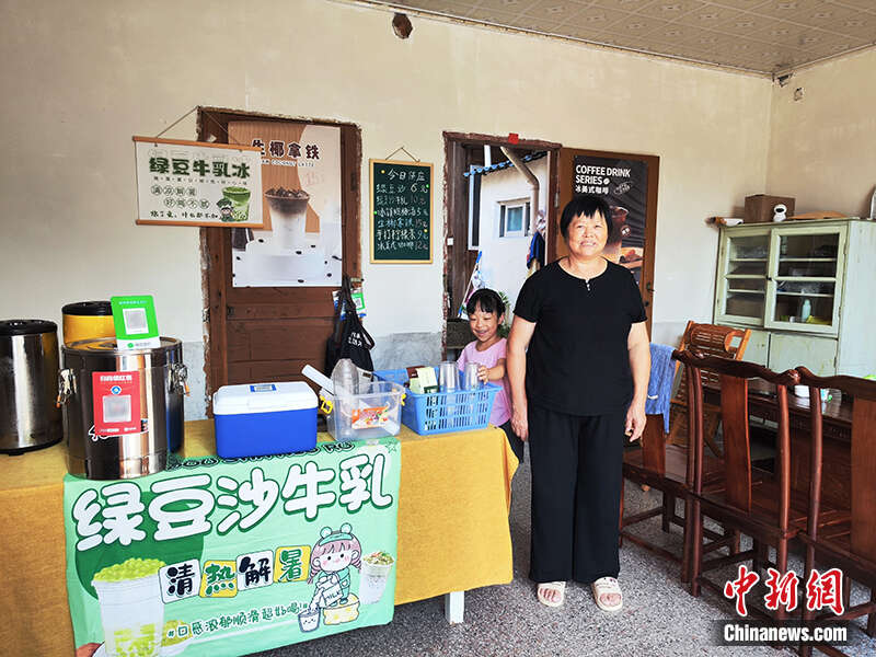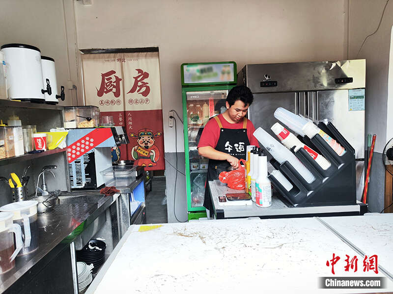 小伙叫兰嘉祥,1999年生人,他的店铺在今年5月1日开张,是受到政府扶持的返乡创业项目之一。村里为他提供了租金优惠,第一年免租,以鼓励他在老街开店。与村干部沟通后,兰嘉祥决定将店铺定位于同时满足本地人和游客的需求,“游客群体倾向于购买红糖产品,而村民则更偏爱奶茶饮品。”