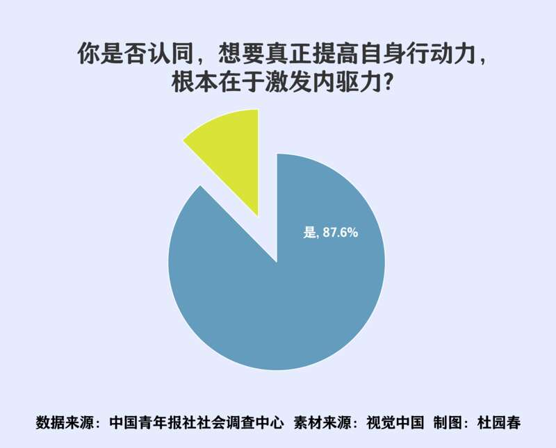 调查中,87.6%的受访青年认为真正提高自身行动力,根本在于激发内驱力,其中受访00后认同度相对最高(91.2%)。