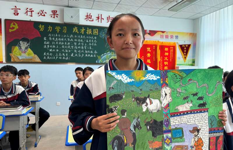 牧区姑娘尼东拉毛记下了习爷爷的叮嘱。2023年9月,她第一次走出家乡果洛州班玛县,坐汽车辗转9个多小时,来到这所中学。几个月后,品学兼优的她又第一次坐飞机远赴上海研学。黄浦江畔、灯火璀璨,她立下人生志向——将来到艰苦地区去当一名语文老师,把无限精彩的世界讲给更多人听。