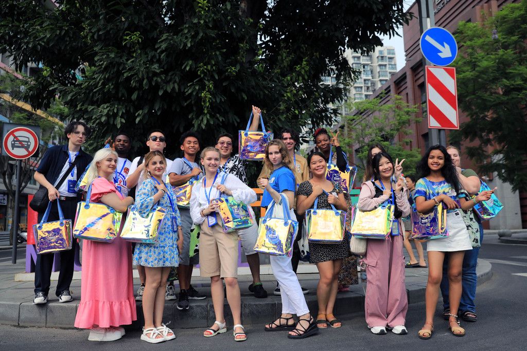 2024年8月30日,四川成都,外国青年在成都街头拍摄合影。当日,来自美国、德国、泰国、赞比亚等13个国家的青年在四川成都参加“唱歌学中文——唱行成都”研学营,在城市中行走,感受沉浸式音乐体验之旅。 中新社记者 王磊 摄