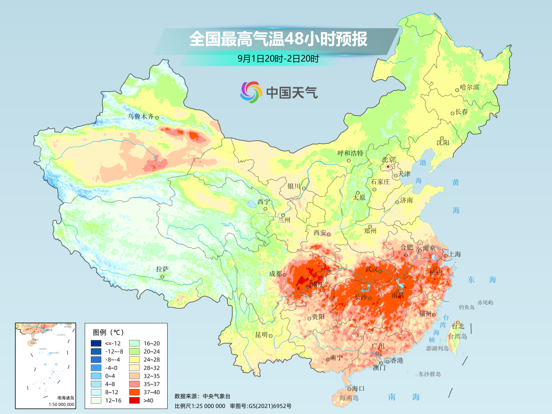 今天南方出现大片高温,37℃以上酷热区域已从四川盆地向长江中下游地区蔓延,而明天将是这轮高温范围最大、强度最强一天。