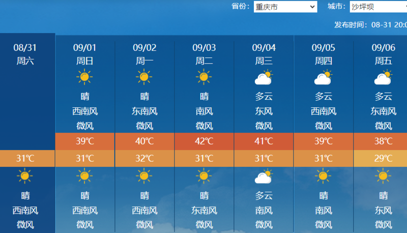 总体来看,这轮高温强度最强、耐力最足的地方仍在四川盆地,这里也将是未来十天全国40℃酷暑最集中区域。像重庆,接下来7天最高气温仍是接近或达到40℃,高温统治力之强,可见一斑。
