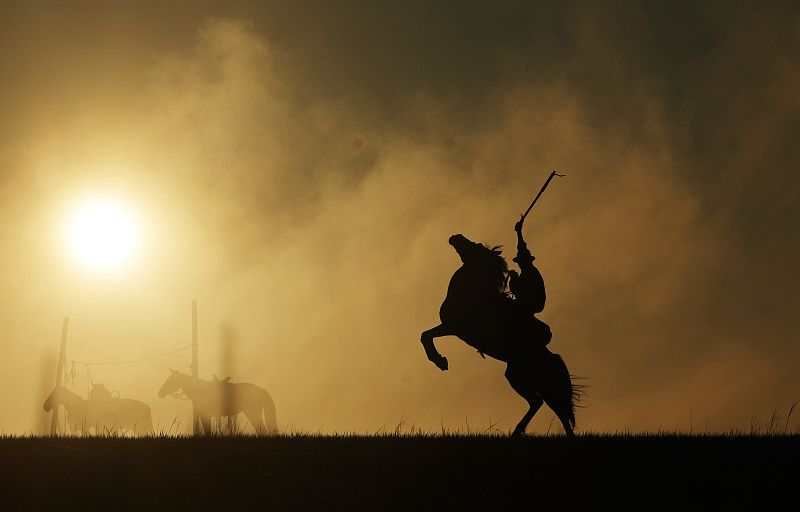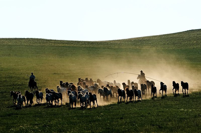 2024年8月30日,内蒙古锡林浩特凤凰马场,套马手表演套马。近年来,内蒙古锡林浩特市一些牧场依托丰富的马文化资源,组织牧民当起演员,为游客表演套马、立马、训马等草原民俗,展示蒙古族的独具风情,进一步丰富了旅游项目,推动了马文化与旅游的深度融合,拓宽了旅游客源市场,促进了牧民增收。