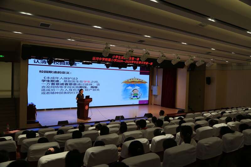 在运河中学附属小学的开学第一课上,通州法院刑事审判庭法官徐莉法官用通俗易懂的语言向学生们介绍什么是校园欺凌、校园欺凌的危害以及面对校园欺凌应该如何应对,并通过典型案例介绍校园欺凌实施者承担的相应法律责任,强调法律对未成年人犯罪“宽容但不纵容”的态度,引导同学们勇敢地向校园欺凌说“不”,不做受害者、不做欺凌者、不做冷眼旁观者。