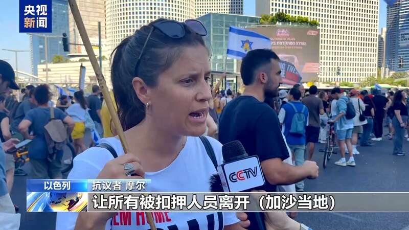 抗议者 摩尔:我们要求达成协议,让所有被扣押人员离开(加沙当地),我们要求政府停止采取任何阻碍达成协议的行动。我们不希望通过任何其他的方式(释放被扣押人员),因为任何其他方式都会导致他们失去生命。