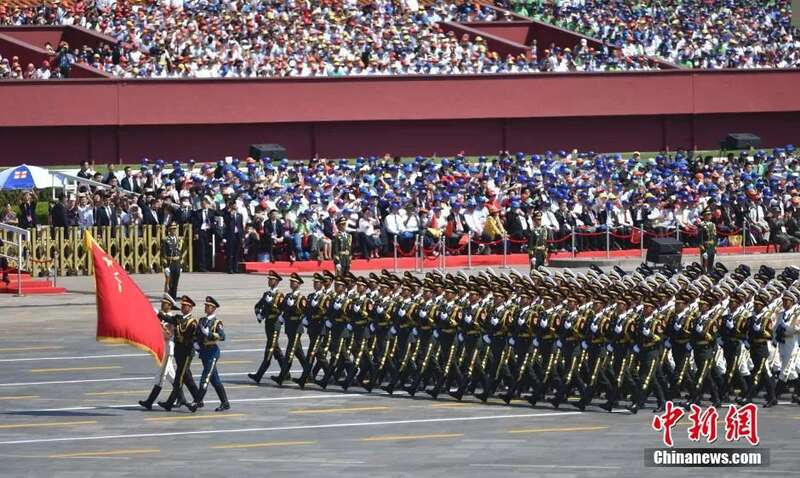 图为2015年9月3日上午,纪念中国人民抗日战争暨世界反法西斯战争胜利70周年大会上,三军仪仗队通过天安门广场。