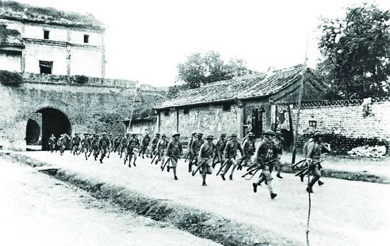 图为驻守宛平城的中国军队奔赴卢沟桥抵抗日军。