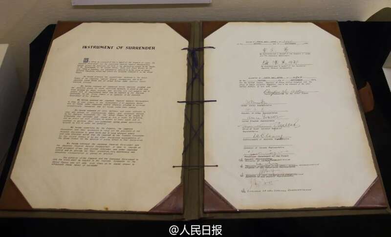 2015年8月31日,日本外务省展出1945年9月2日签署的投降书原件。人民网记者 刘军国 摄