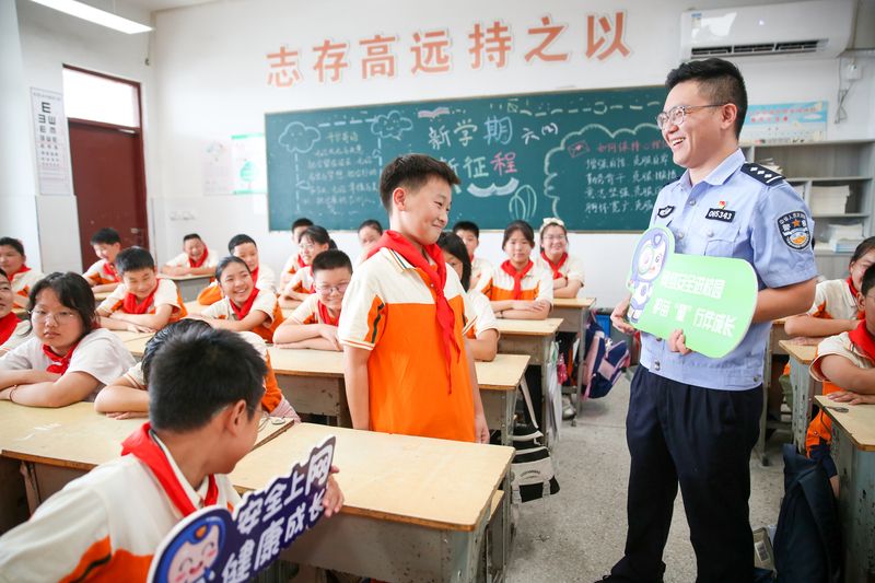 2024年9月4日,江苏南通如皋市委网信办组织下原派出所民警来到下原小学,开展“护苗有我,e路同行”主题活动,通过师生喜闻乐见的方式,引导学生新学期安全上网、文明上网的用网观念。