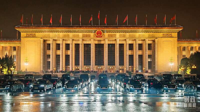 △9月4日,华灯初上的人民大会堂。(总台央视记者王子杭拍摄)
