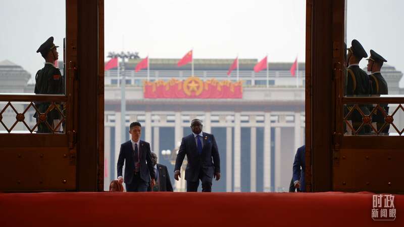 △非洲国家领导人步入人民大会堂。(总台央视记者赵怡彬拍摄)