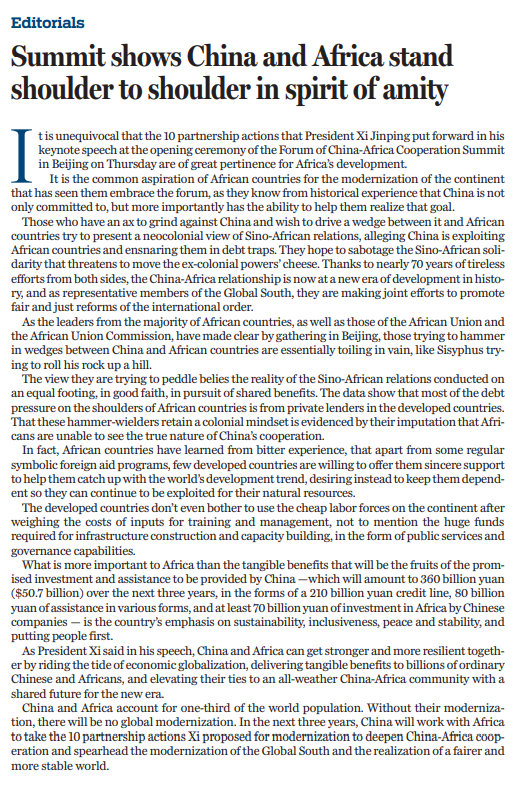 原标题:Summit shows China and Africa stand shoulder to shoulder in spirit of amity