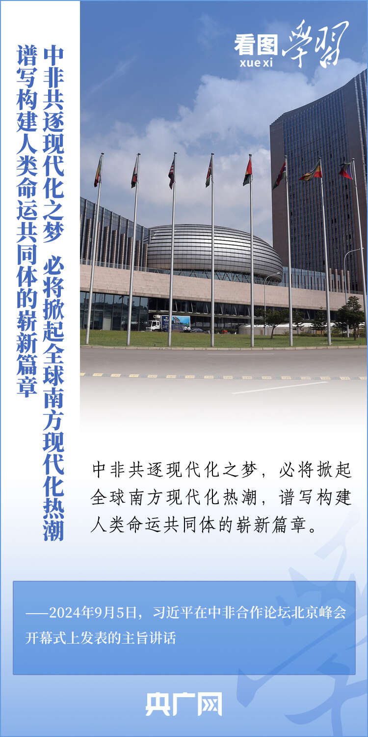 “中非共逐现代化之梦,必将掀起全球南方现代化热潮,谱写构建人类命运共同体的崭新篇章。”习近平主席表示,中非关系正处于历史最好时期,中非将携手推进六个现代化,并推动实施“十大伙伴行动”。一起来学习!