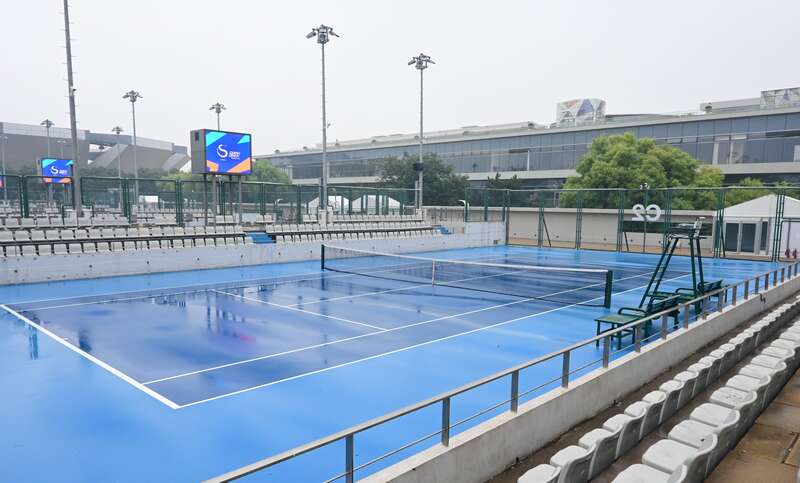 9月9日,国家网球中心,新增观众座位后的室外球场。实习生 范晗玥/摄