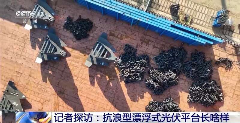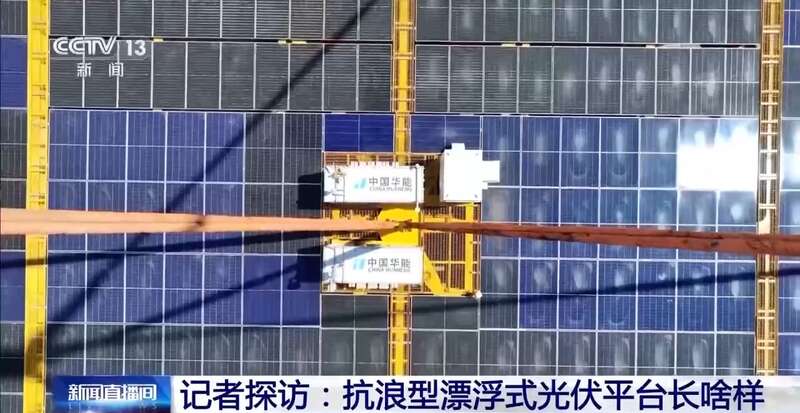 华能“黄海一号”漂浮式海上光伏平台项目经理 南明军:这是我国目前建成的水深最深的漂浮式海上光伏平台。按照我们所在海域50年一遇海况进行设计,它最大可以抗10米高度的海浪,是国内目前抗浪能力最高的漂浮式海上光伏平台。