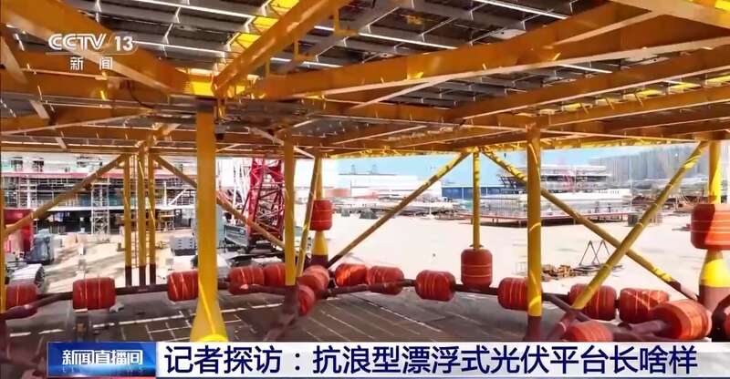 其实,这个抗浪型漂浮式光伏平台还有一个专业的学名,叫不可上浪型漂浮式光伏平台。顾名思义,就是海浪打不上这个平台,从而避免了海水对光伏组件的腐蚀,最大程度地确保发电效率。它和传统漂浮式光伏平台最大的不同,就是“黄海一号”平台特别高,高到海浪都打不上来。那么它除了高,还有什么特别之处? 来看记者的探访。