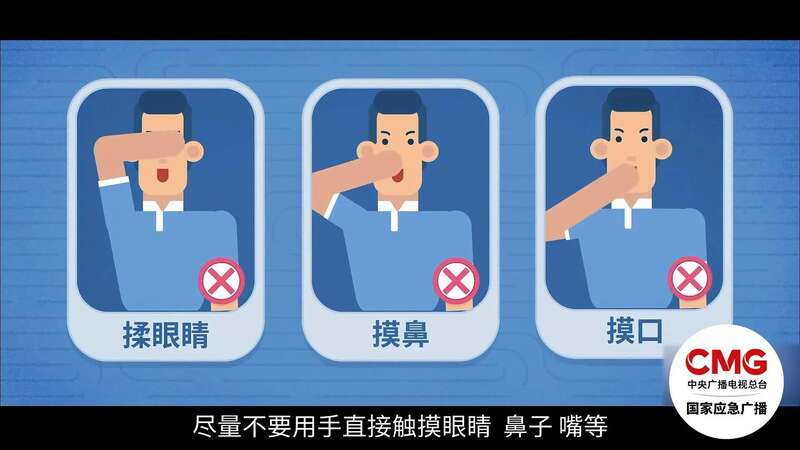 3.咳嗽、打喷嚏用纸巾、毛巾等遮住口鼻然后洗手,尽量避免触摸眼睛、鼻或口;