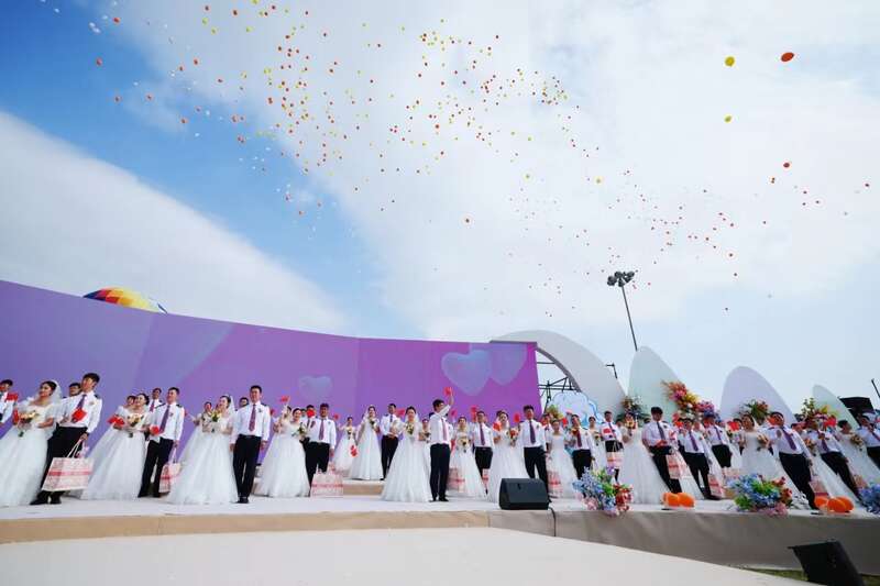 中国青年报客户端讯(焦键 师润润 中青报·中青网记者 孙海华)9月10日上午,“铁定终身 一路相伴”全国铁路职工集体婚礼在古都西安渭河城市运动公园举行,来自全国铁路工会系统29个单位的100对新人和新人家属参加了集体婚礼。