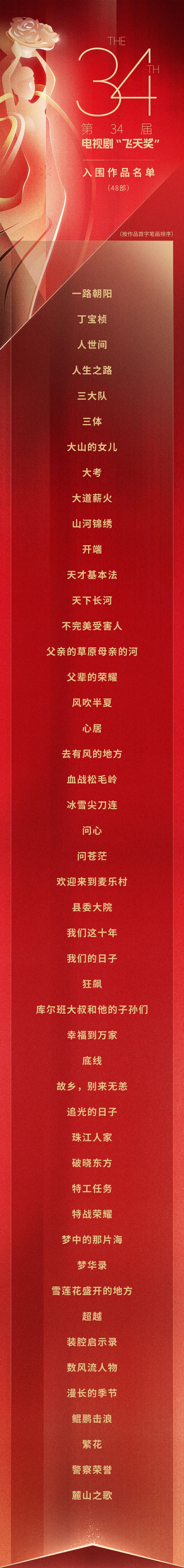 第34届“飞天奖”的评选范围为2022年1月1日至2023年12月31日期间,在中央电视台或各地卫视频道播出的电视剧,在全国性重点视频网站首播的电视剧和网络剧。这也是“飞天奖”首次将网络剧纳入评选范围。第28届“星光奖”的评选范围为2022年1月1日至2023年12月31日期间,在中央电视台或地方电视台播出的电视综艺节目、电视戏曲节目、电视纪录片、电视文艺栏目、少儿电视节目、电视动画节目等六大类作品。