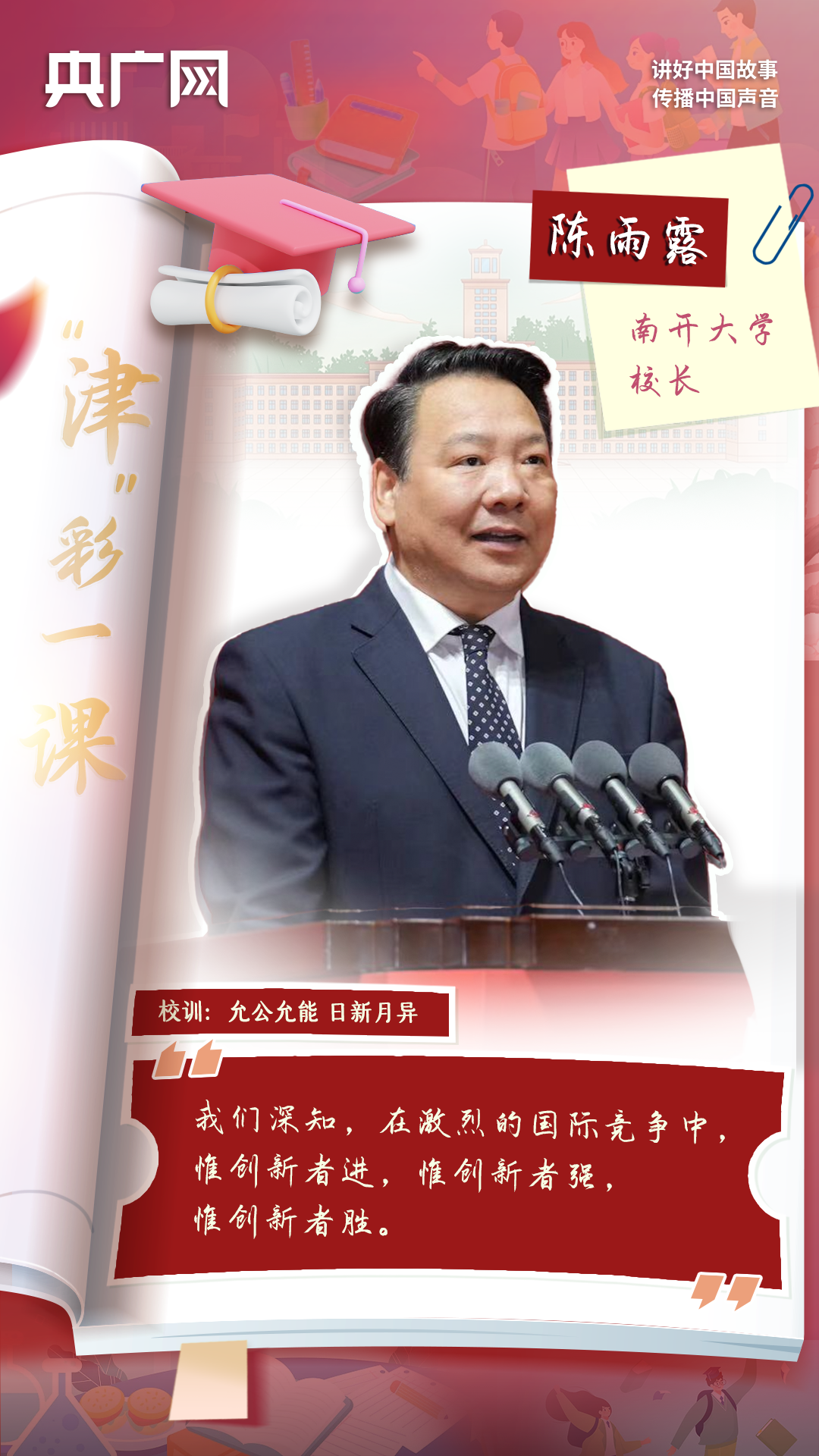 本期,我们走进南开大学,感受南开大学校长陈雨露“‘津’彩一课”的温度与力量。